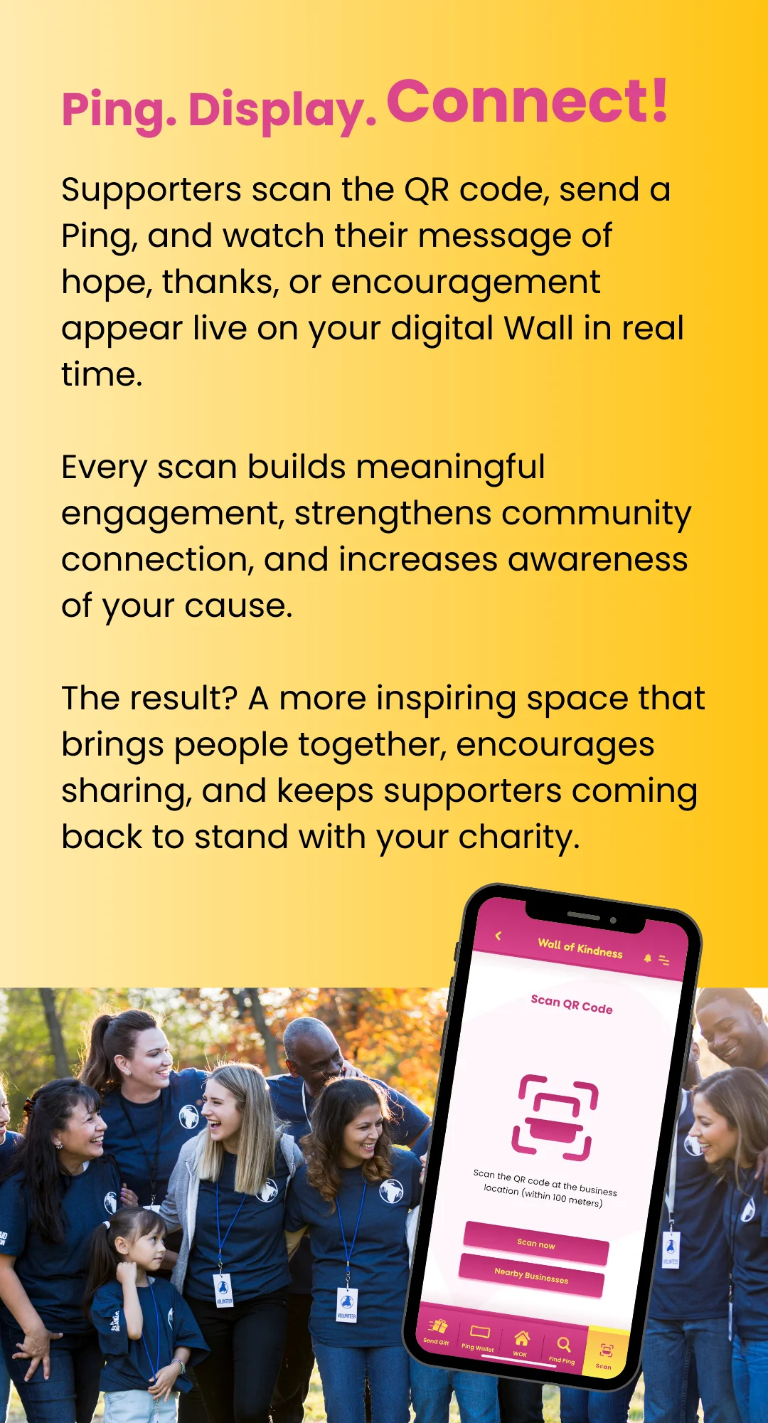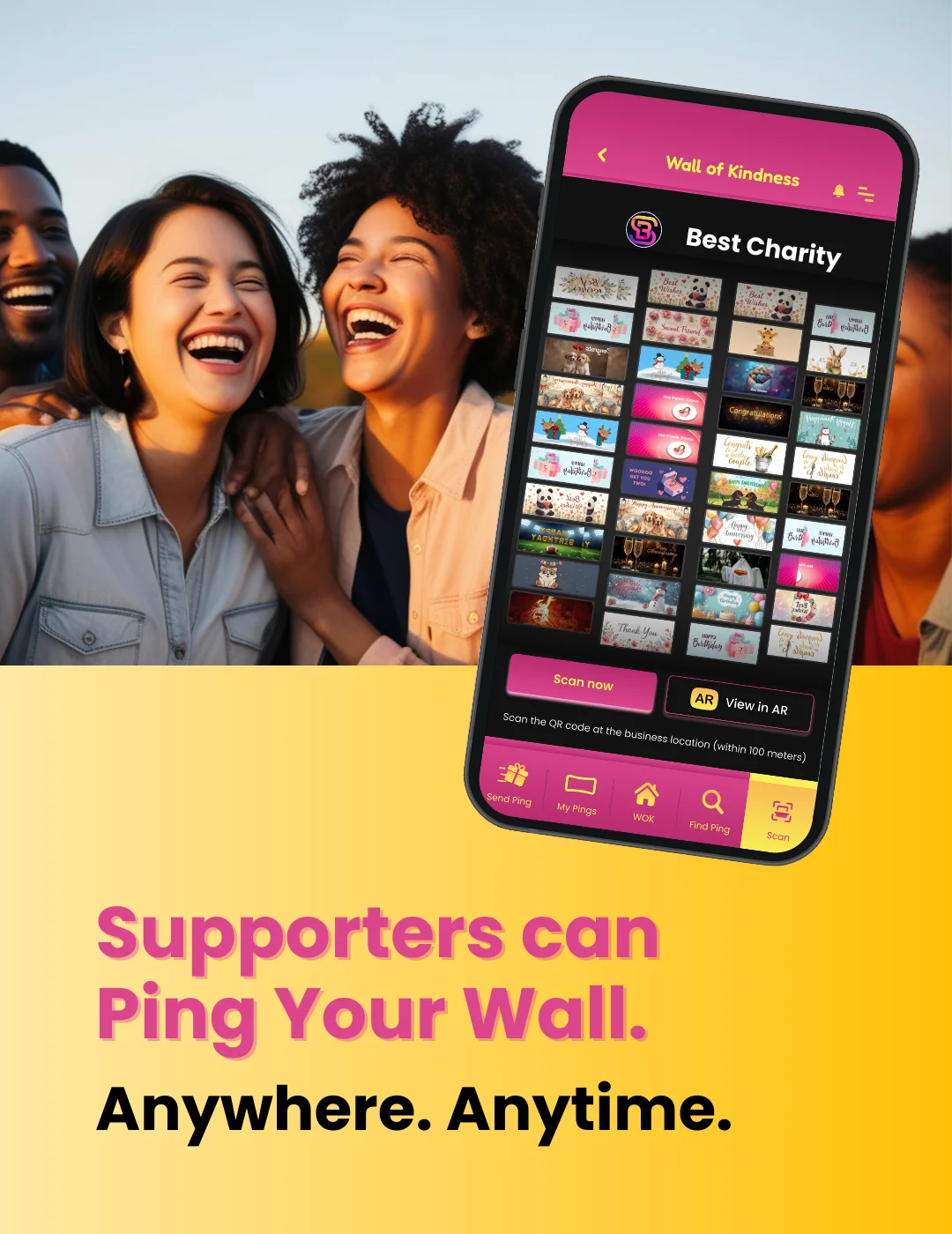 Our giving model is simple — we spread joy, spark kindness, and brighten lives with every Ping. Plus, we donate so you don’t have to! Feel great sending happiness that gives back.